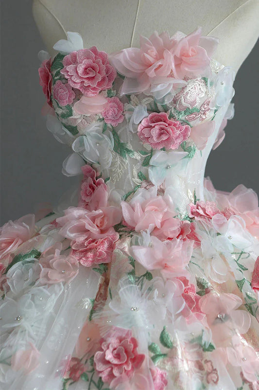 Flower Fairy White Lace Appliques Flower Wedding Dress 2025 Ball Gown Strapless Sleeveless Backless Court Train Wedding Dress cg25904