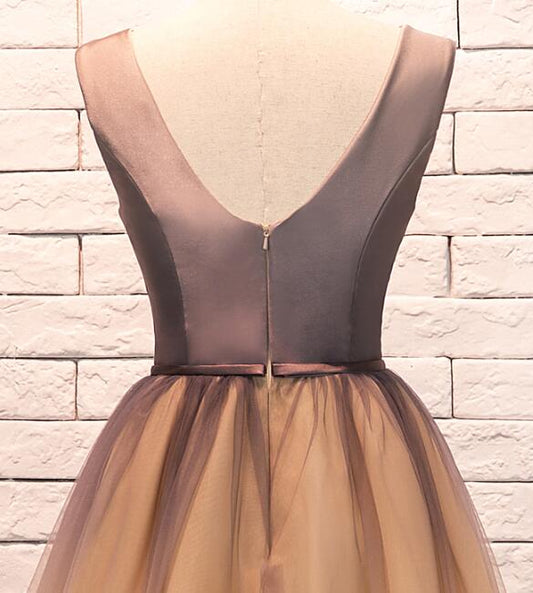 Cute Gradient Champagne Knee Length V-neckline Party Dress, Short Homecoming Dress cg12270