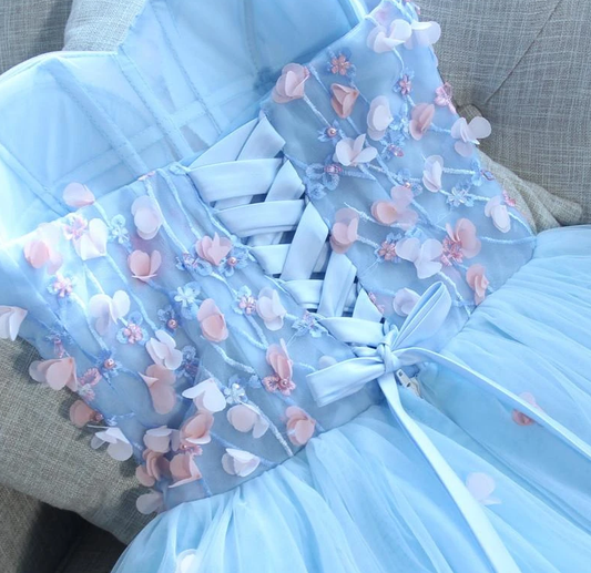 Beautiful Light Blue Short Sweetheart Homecoming Dress, Tulle Flowers Party Dress cg13077