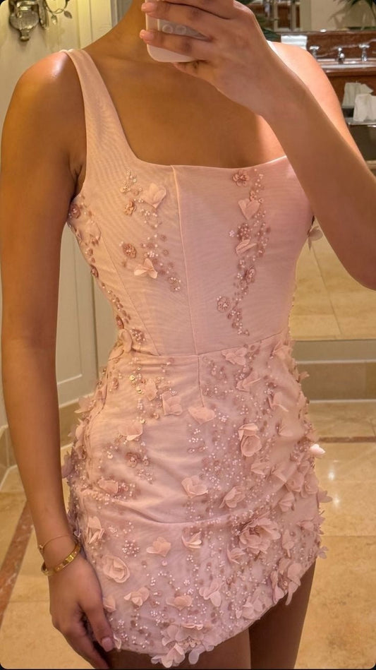 Pink Square Neck Sexy Short Party Dress Homecoming Dress cg25668