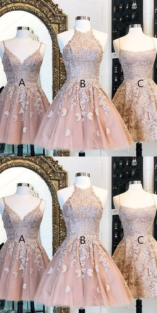 TULLE LACE APPLIQUE SHORT HOMECOMING DRESS cg3651