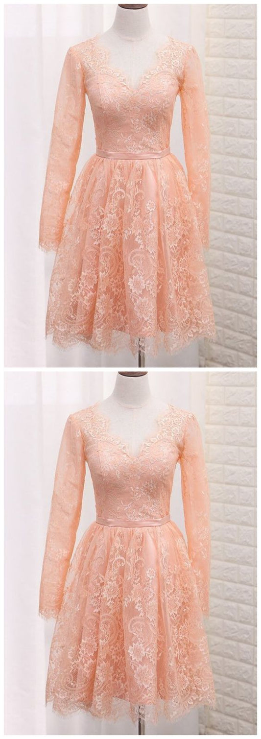 A Line V Neck Long Sleeves Lace Homecoming Dresses With Sash cg6952