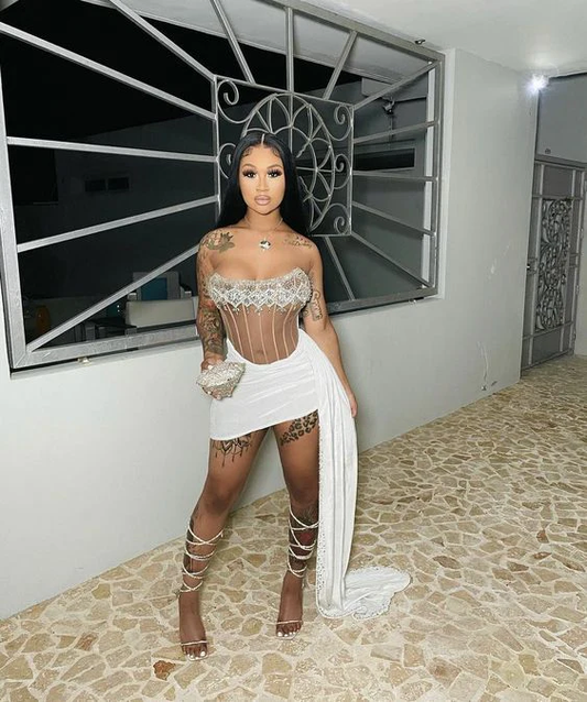 Sparkly Rhinestones White Homecoming Dresses cg24900