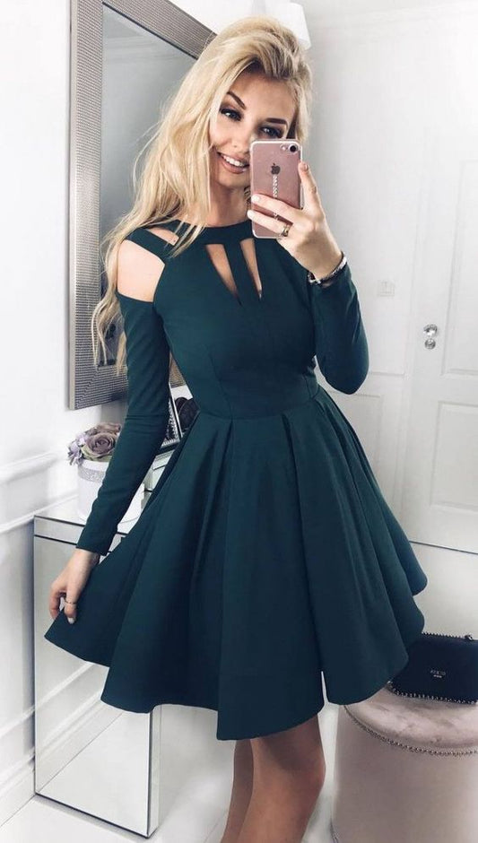 A-Line Off-the-Shoulder Long Sleeves Homecoming Dress cg226