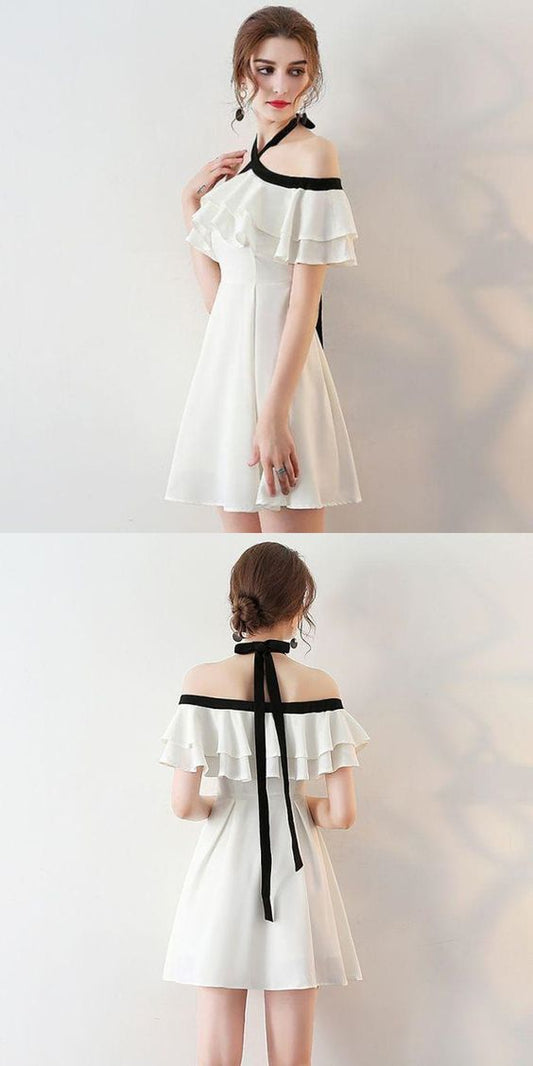 Short Off Shoulder Homecoming Dress, Halter Chiffon Knee-Length Homecoming Dress cg220