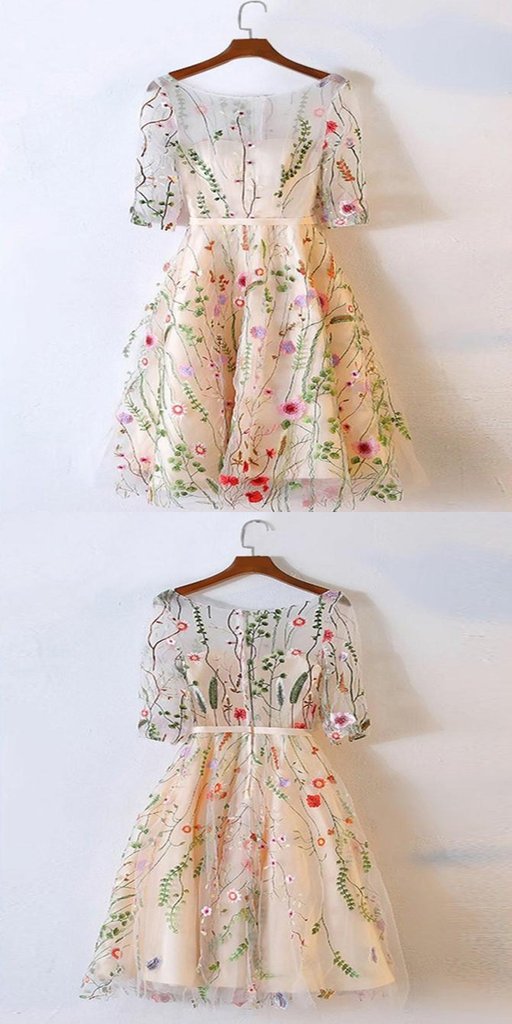 A-Line V-Neck Two Straps Homecoming Dresses With Appliques cg583