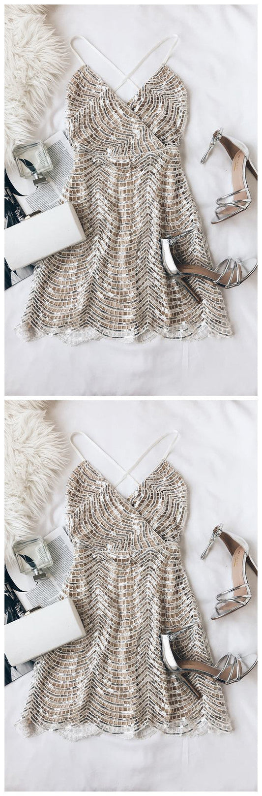 Sequins Spaghetti Strap Bodycon Mini homecoming Dress cg860