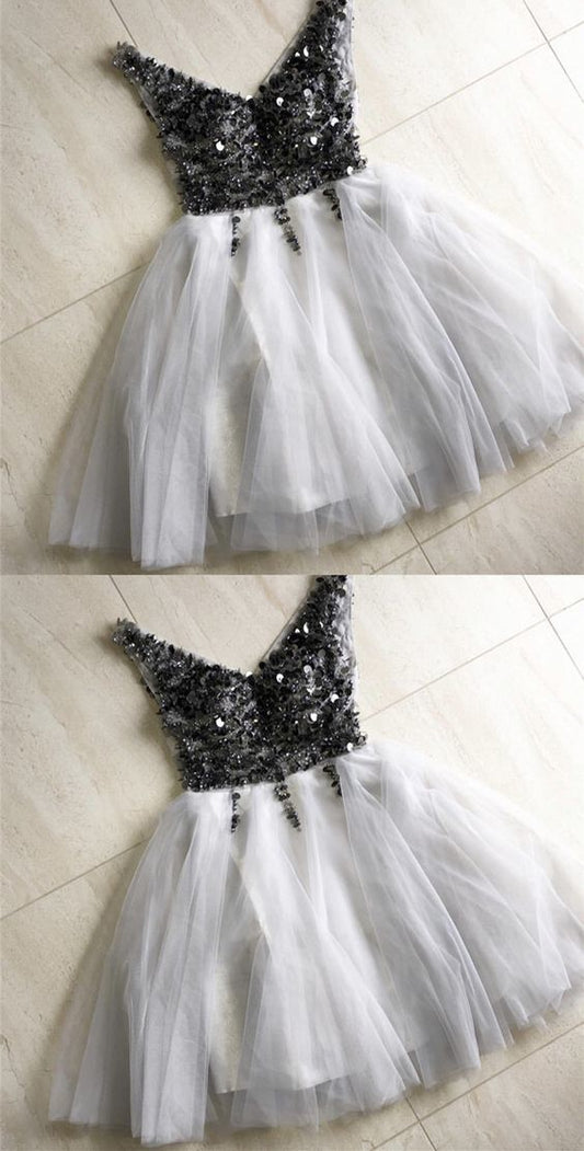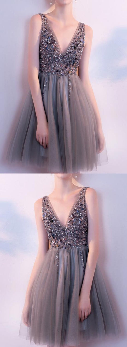 V neck Short Tulle homecoming Dress Beaded women Party Dress cg882
