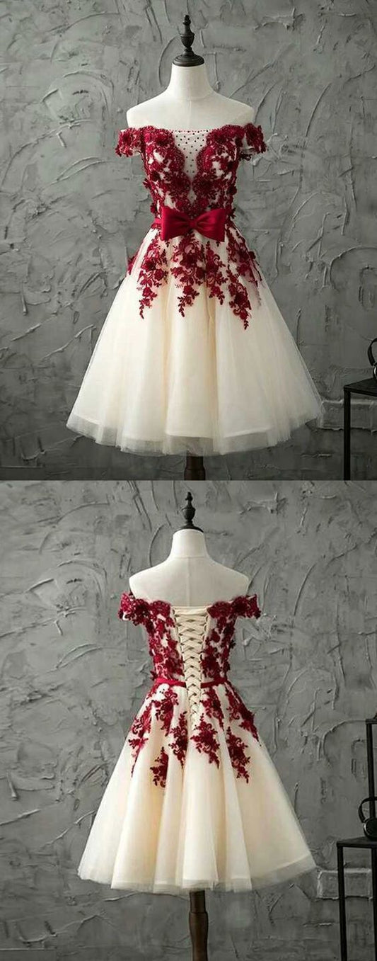 Short Lace Long Sleeves Off Shoulder Homecoming Dresses cg867