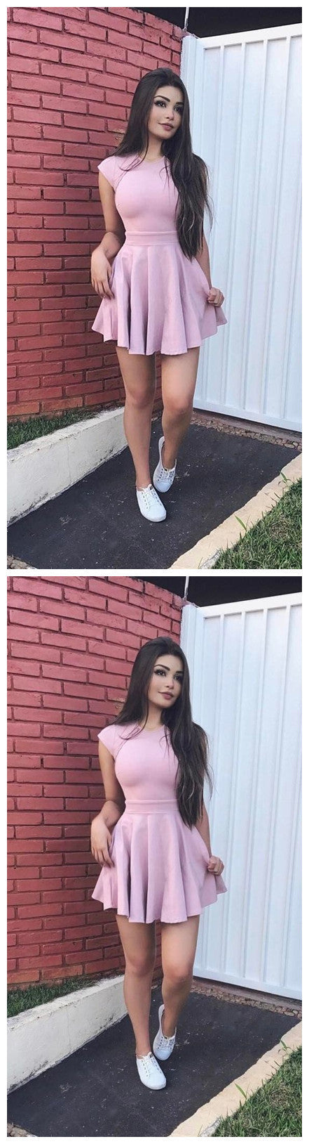 A-Line Crew Cap Sleeves Short Homecoming Party Dress with Pockets cg869
