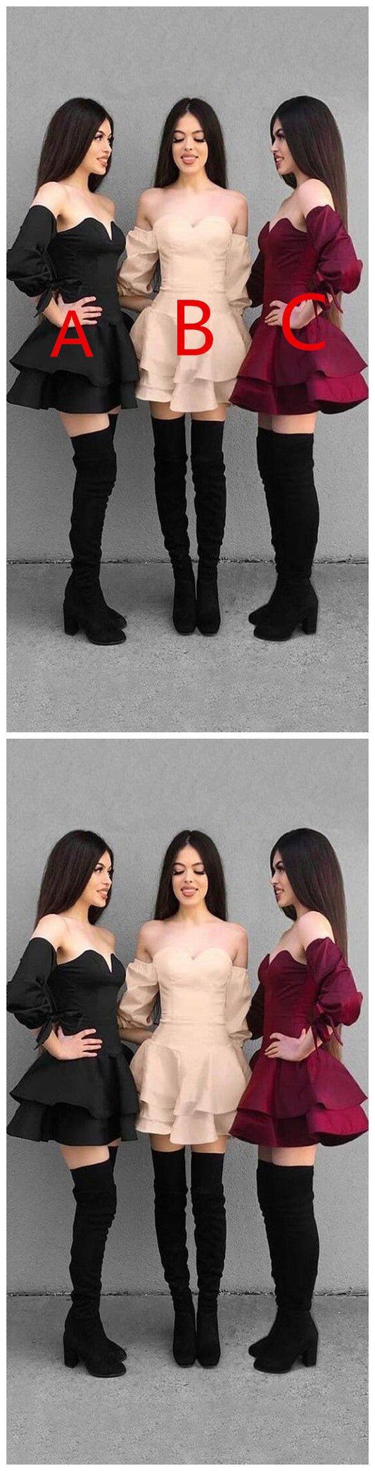 Off the Shoulder Sweetheart Long Sleeves Short Homecoming Dresses cg870