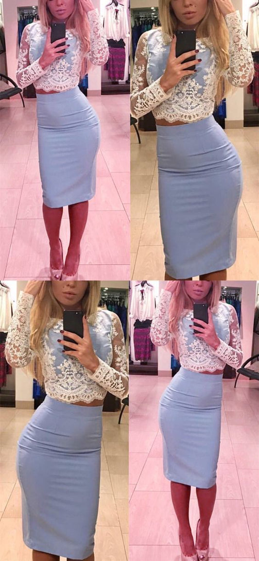 Long Sleeves Lace Crop Top Dresses Short Elegant Homecoming Dress cg880