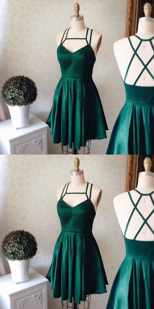 Emerald Homecoming Dress,Short Party Dress,Green Straps Formal Dress,V neck Short homecoming Dress cg905