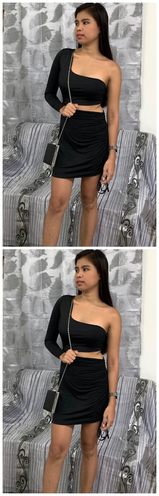Black One Shoulder Cut Out Mini Dress , homecoming dress cg953