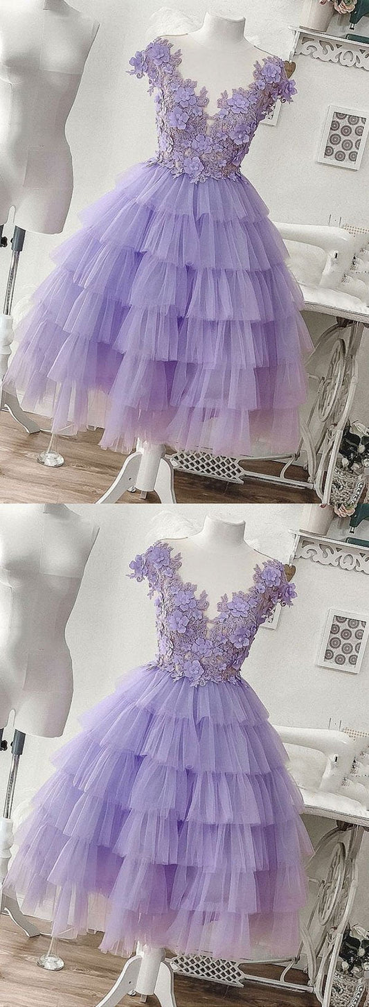 Purple tulle appliqué short homecoming dress, homecoming dress cg1123