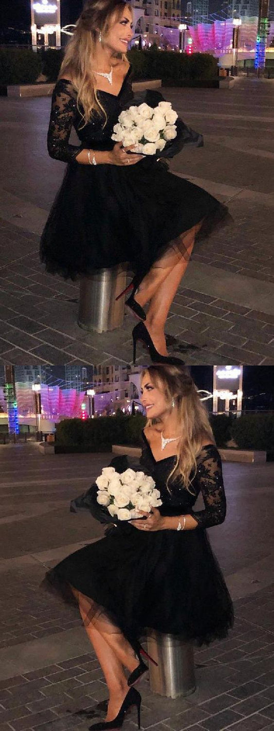 A-Line Off-the-Shoulder Short Sleeves Short Black Homecoming Dress,Simple Homecoming Dresses cg1117