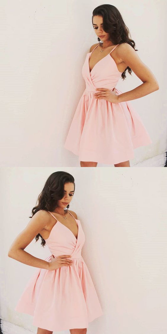 Pink A Line Spaghetti Short Satin Homecoming Dress cg1109