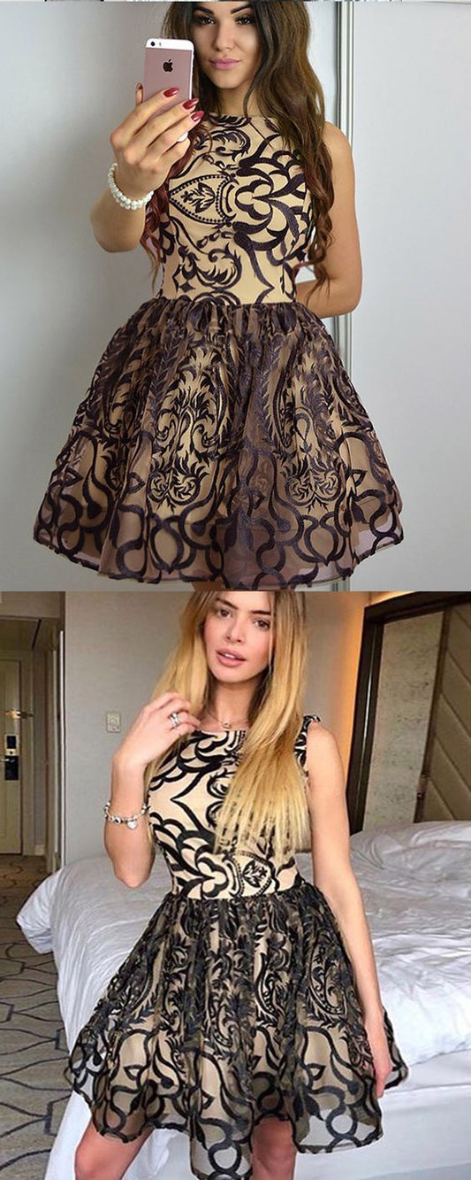 Black Round Neck Short Dress,Long Sleeve Sheer Back Cheap Homecoming Dress,Party Dress cg1259