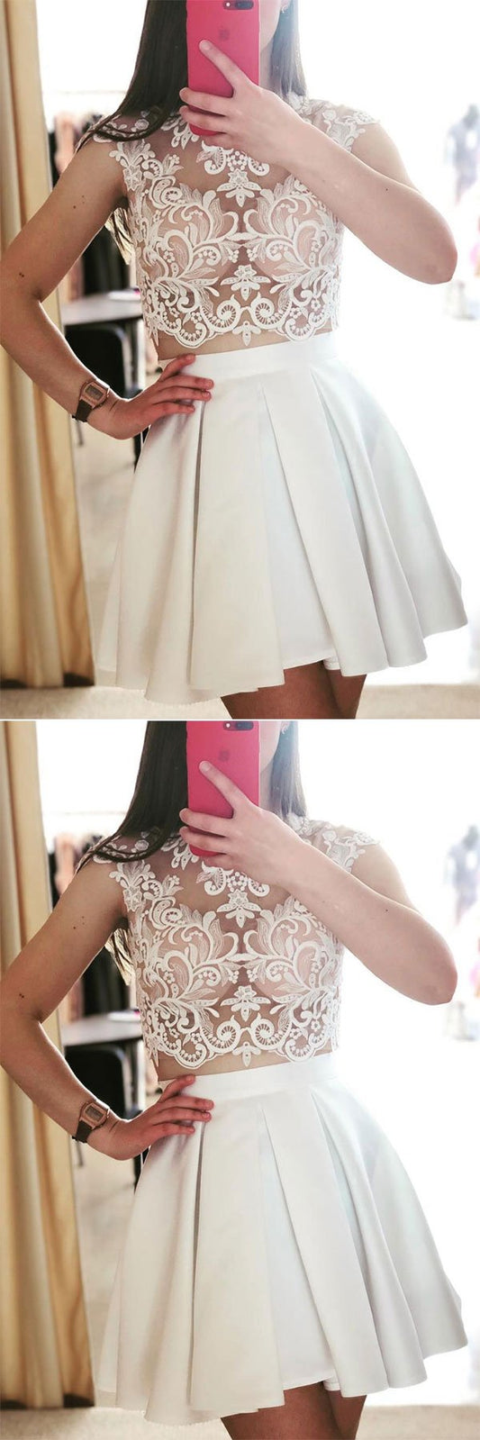 Cute white two pieces lace short dress, white homecoming dress cg1424