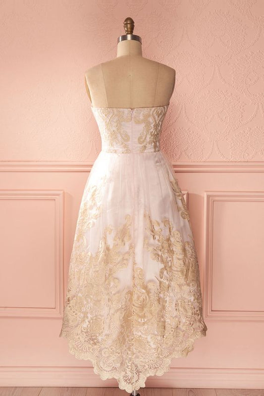 Sweetheart Homecoming Dresses, Hi-low Homecoming Dresses, Gold Lace Homecoming Dresses, Charming Homecoming Dresses, Homecoming Dresses cg1458