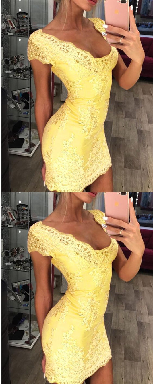 yellow lace homecoming dresses,bodycon homecoming dresses cg2372