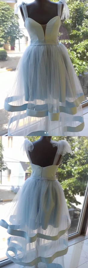 BLUE TULLE SHORT DRESS, BLUE TULLE HOMECOMING DRESS cg2386