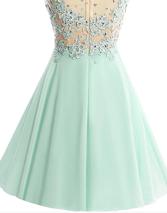 Cute Lace Applique Knee Length Round Neckline Party Dress, Short homecoming Dress cg2636