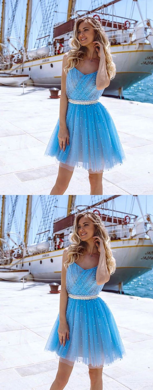 Cute blue short dress, blue tulle homecoming dress cg2601