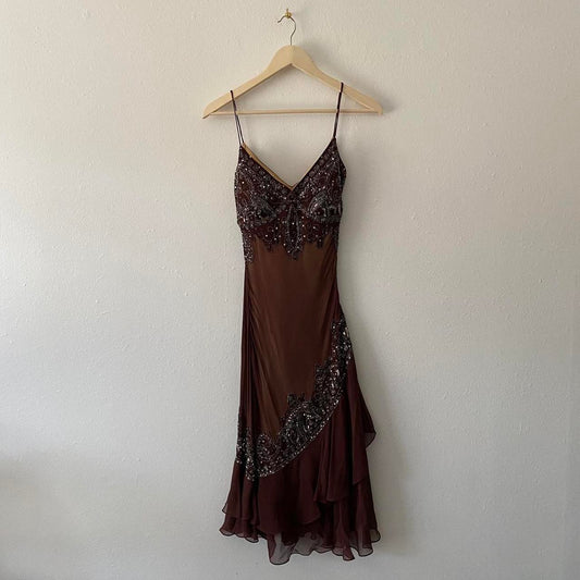 Brown Beaded Vintage Y2K Fairy Short/Mid-Length Tea Length Chiffon Homecoming Dress Birthday Party Dress gh5090
