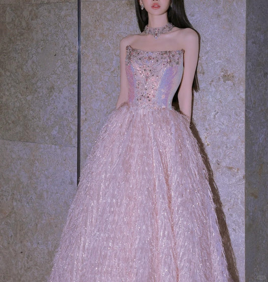 Pink Fashion Beaded Elegant Long Tulle Ball Gown Evening Dress gh5074