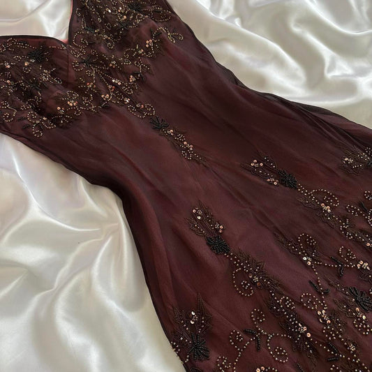 Brown Black Retro Elegant Stunning Exquisite Beaded Long Chiffon Ball Gown Evening Gown Party Dress Prom Gown gh3897