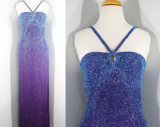 Purple Blue Shiny Fashion Gradient Long Sequined Chiffon Prom Dress Evening Dress Party Dress gh5133