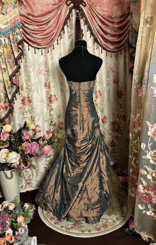 Gradient Tan Brown Gold Bronze Vintage Elegant Exquisite Beading Long Tulle Satin Floor Length Ball Gown Evening Gown Party Gown Graduation Gown gh3937
