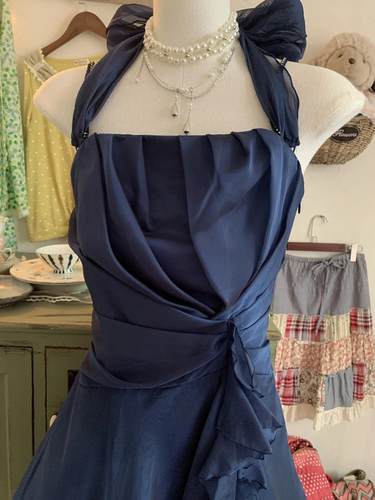 Blue Vintage Elegant Exquisite Beading Long Satin Floor Length Ball Gown Evening Gown Party Dress gh3936