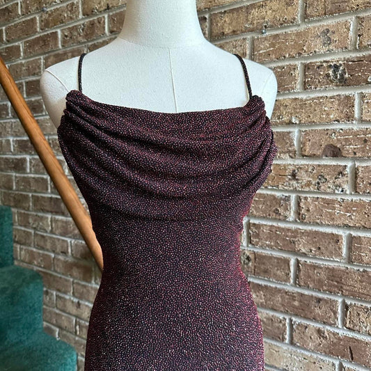 Burgundy Black Retro Fashion Shiny Elegant Spaghetti Strap Long Sequined Ball Gown Evening Dress Birthday Party Dress Prom Dress gh3955