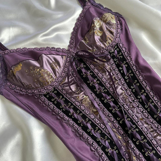 Purple Vintage Elegant Exquisite Lace Floral Embroidery Corset Long Satin Prom Dress Evening Dress Party Dress Graduation Dress gh3939