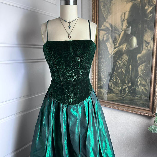 Dark Green Velvet Vintage Elegant Exquisite Beaded Corset Long Satin Floor Length Prom Dress Evening Dress Party Dress Graduation Dress gh3938
