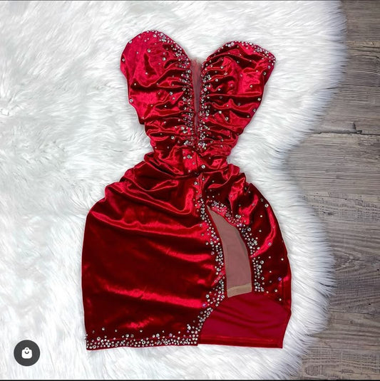 Modest Mermaid Strapless Red Sequin High Split Cut Formal Gown 20th Birthday Dress Prom Dresses 18th Birthday Outfits W0348