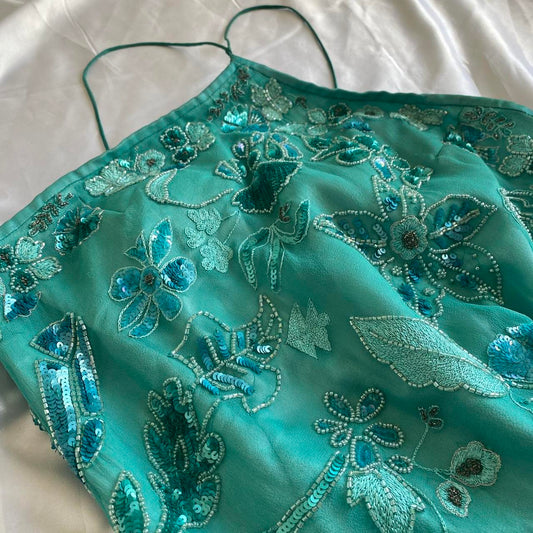Green Elegant Romantic Delicate Floral Beading Spaghetti Strap Long Chiffon Homecoming Ball Gown Evening Dress Birthday/Wedding Guest/Holiday Party Dress Prom Dress gh4024