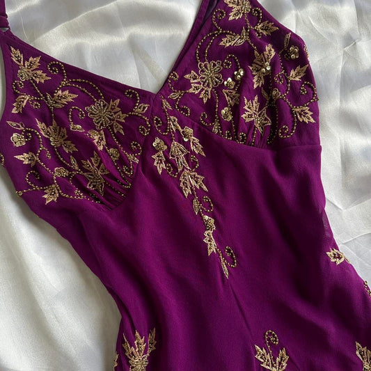 ___ Deep Plum Purple Beautiful Beautiful Vintage Gorgeous Fashion Elegant Delicate Floral Beaded Long beaded Chiffon Flowing Ball Gown Evening Gown Birthday Wedding Guest Party Dress Prom Gown Mother of the Bride Gown gh4015