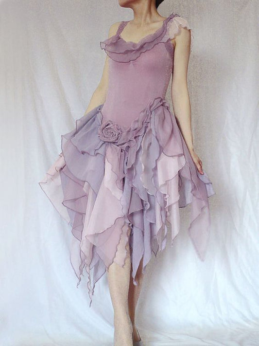 Purple Fairy Floral Elegant Cute Short/Mid-Length Chiffon Prom Dress Homecoming Dress Party Dress Birthday Dress gh4168