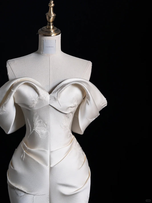 Ivory Elegant Satin Long Mermaid Slim Floor Length Ball Gown Evening Gown Wedding Dress gh4199