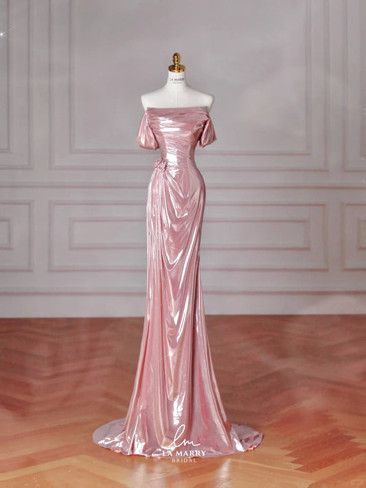 Pink Beautiful Elegant Satin Long Mermaid Slim Floor Length Ball Gown Evening Dress Prom Dress gh4204