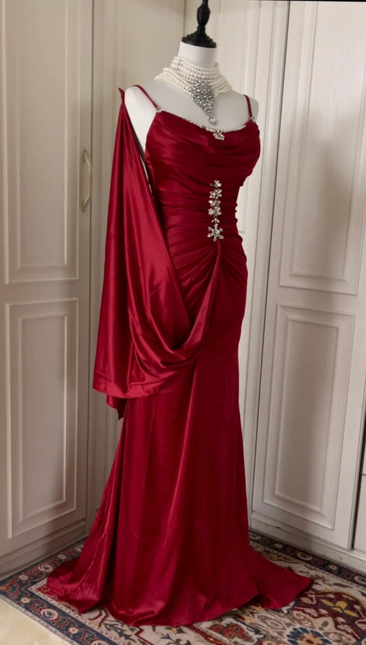 Pink Vintage Elegant Long Satin Mermaid Slim Evening Dress Party Dress Prom Dress gh4274