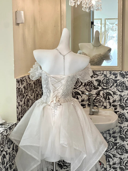 White Sparkly Beaded Short Tulle Cute Sweet Homecoming Dress Birthday Party Dress Wedding Dress gh4263