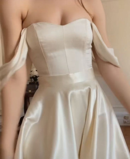 Pretty A line Off The Shoulder Satin Summer 16th Birthday Dress Hoco Dress Birthday Outfit 19th Birthday Mini Cocktail Dresses DH515