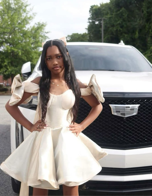 Cute A line Off The Shoulder Short Sleeves Formal 8th Grade Homecoming Dresses White Summer Middle School Hoco Dress Homecoming Outfits DH53