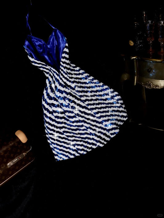 Blue gorgeous sequined homecoming dress short prom dress evening dress gh4429