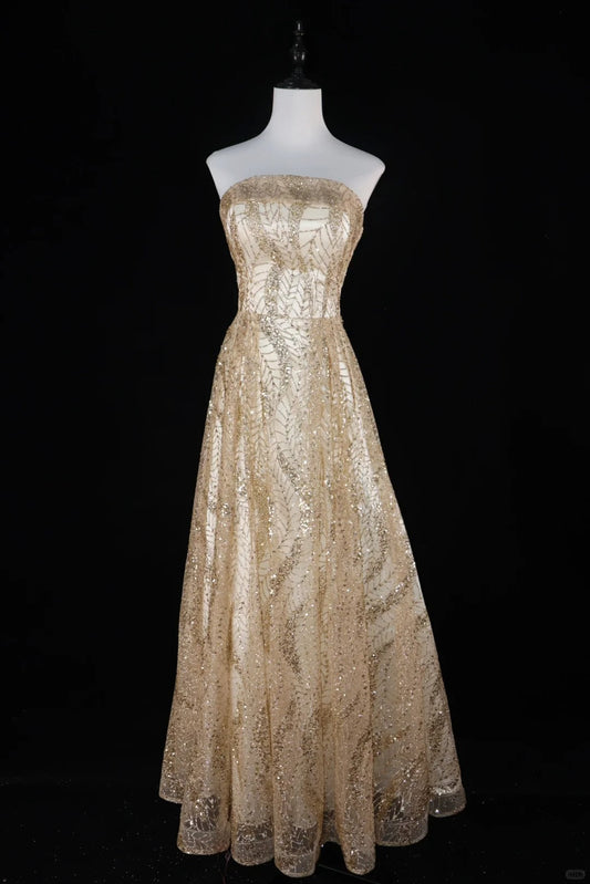 Glitter Gold Bling Bling Long Beaded Ball Gown Evening Gown Graduation Gown Adult Gown gh4540
