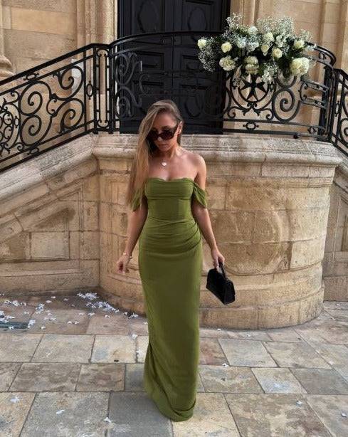 Elegant Wedding Guest Outfit Sheath Off The Shoulder Green Night Dresses Summer Wedding Guest Dresses Graduation Dresses DP759